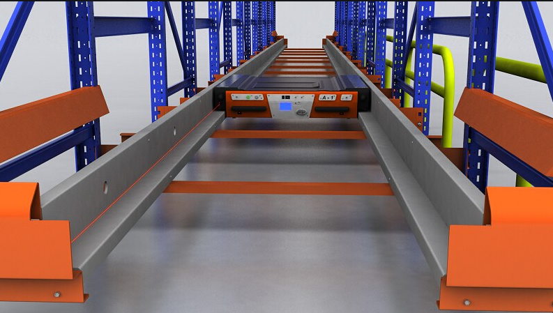 5、取貨方便:取貨時,可以用穿梭車把一些放得太深的貨物移到合適的位置,然后用叉車把托盤里的貨物從貨架上取出來。